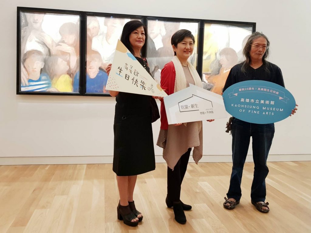李玉玲進一步說明,高美館26週年線上館慶月,以藝術家、館員及市民大眾3個最貼近美術館核心的面向作為主題,首次公開藝術家在防疫期間關懷社會的作品傳遞一數量能。高美館館員也投入響應,以幽默的cosplay挑戰館內典藏作品,用隨手可得的物件詼諧詮釋〈獻馬圖〉、〈三等車內〉、〈阿里山之春〉、〈整裝〉等作品,回應美國蓋蒂博物館(Getty Museum)在網路上發起的幽默挑戰!最後,更邀請市民大眾在線上分享你我鏡頭下的高美館,藉由眾人主動性的藝術參與,建立藝術與城市的新關係,在疏離中傳遞溫度,每一個故事,都是高美館26年光景中的一個亮點。