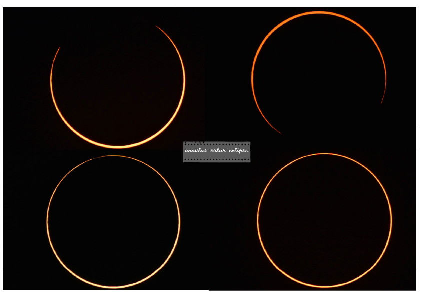 火紅的太陽被月球遮蔽後呈現出一輪明亮的光環,叫做日環食,也像極了一顆閃閃發光的金環,所以日環食也被稱作「金環食」,高雄市偏南的區域因不在環帶上,只能看到日偏食。
