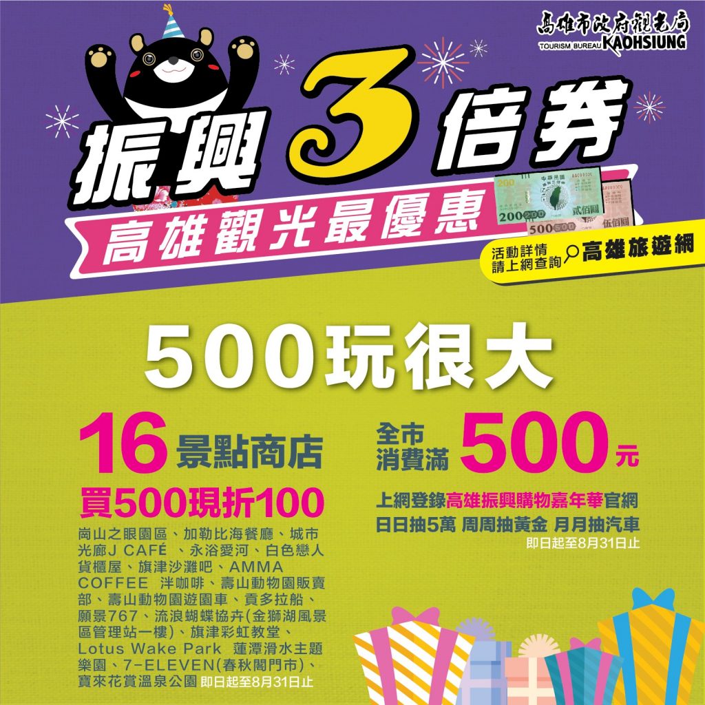 來高雄觀光消費不只荷包精省,更有機會賺到更多好康!相關活動詳情,請上「高雄旅遊網」查詢。