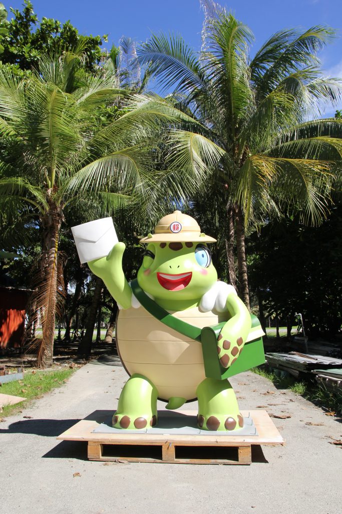 海巡署東南沙分署攜手中華郵政(股)公司高雄郵局,規劃以海龜為南沙郵政特色主題,以海龜郵筒為郵政代辦所遷移運作揭序曲,這個郵筒是由南沙指揮部同仁自行繪製後,由高雄郵局委商製作,今(27)日抵達太平島。