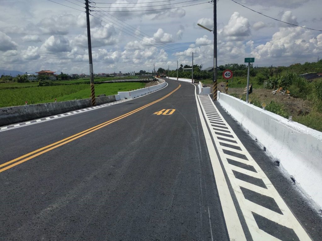 新工處指出,本工程經費約1千178萬元,道路總長233公尺,寬度10公尺,南北向各劃設一快車道(寬3.75公尺),通車後,除有效提升當地道路服務水準及減少道路交通事故外,也成為美濃地區農產品運輸的重要道路。