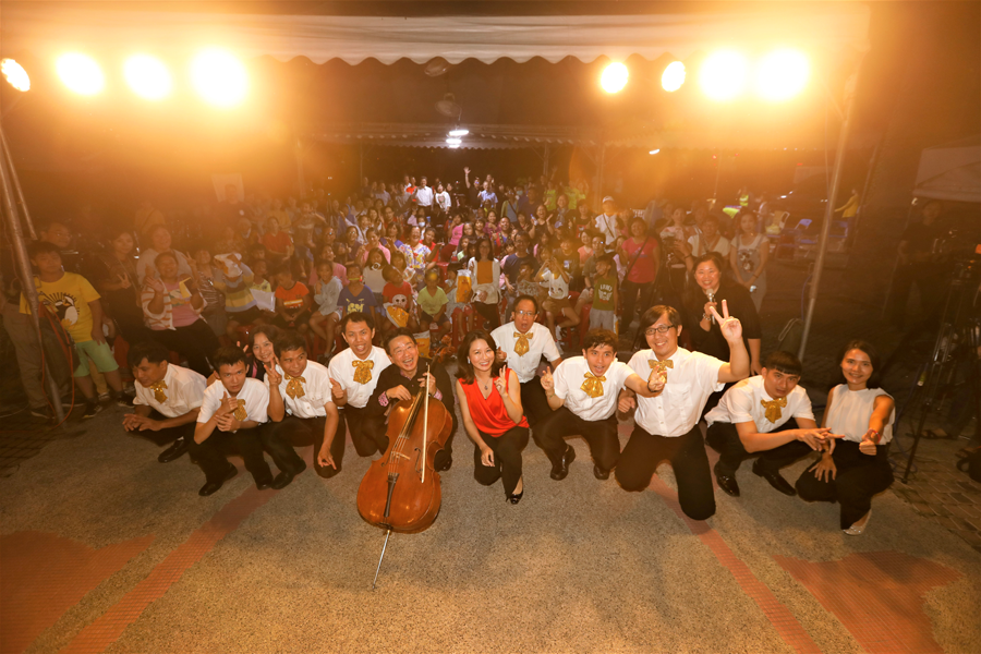 高醫大社會責任在地實踐計劃團隊為了讓不同於山上的音樂走進部落,特別邀請高雄在地星星王子打擊樂團、國際知名大提琴家張正傑、旅美鋼琴家黃惠鈴到那瑪夏,在蟲鳴鳥啼中,和著山裡的風及土壤的味,舉行一場屬於山林原民、與眾不同的音樂會。