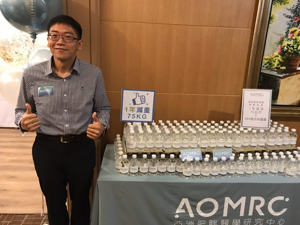 高市1名36歲被診斷為「超級肥胖」的黃姓男子,體重曾高達163公斤,BMI 54 kg/m2,在義大醫院亞洲肥胖醫學研究中心主任宋天洲協助與家人支持下,接受腹腔鏡袖狀胃切除手術治療,1年內減下75公斤相當於一個成年男子體重,重拾健康與良好生活型態,並擺脫睡眠呼吸中止症與脂肪肝,目前體重持續下降中。
