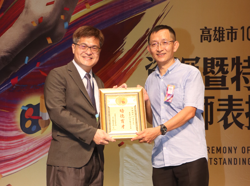 高市109年度資深暨特殊優良教師共計1940位教育人員獲獎,分別是特殊優良教育人員25位,各領域傑出教師125位,以及服務滿10年至40年有1790位優秀教師,高市教育局長謝文斌親自頒獎表揚,感謝教師們的無私奉獻與愛心。