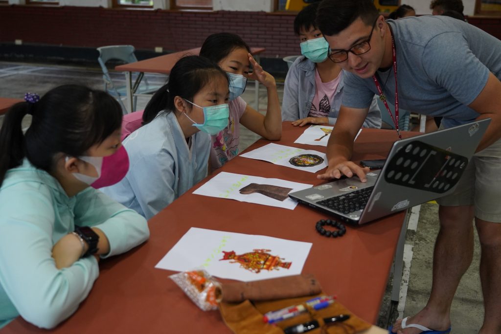 國立中山大學「西灣國際沙龍」系列活動首部曲「未來領袖英語夏令營」前進高雄旗山國小,由台灣學生與來自西班牙、俄羅斯、美國的國際生帶領15名學童進行深度國際文化交流。雙方交流國家在地文化透過家鄉特色與國際素養的結合,激盪出全球在地學習精神的火花。