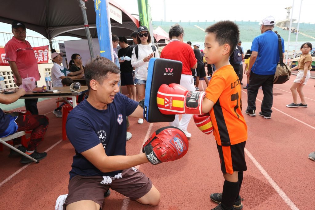 今年的運動體驗活動很豐富,沒有參與過的市民大呼新鮮有趣,例如國武術委員會推出的木人樁體驗,電影「葉問」主角就是用木人椿練拳,太極拳委員會的推手體驗,也呼應熱門的武打電影「太極1:從零開始」,讓參與者感受一下推手,另泰國拳委員會的泰拳擊靶體驗,則有專業教練陪同參與者戴上手套體驗擊靶。 射箭委員會的射箭體驗、滾球委員會的滾球體驗、合球委員會的合球體驗、木球委員會的木球體驗,龍舟委員會的划船機體驗,全都新奇有趣,民眾任意體驗其中16項,集點完成可領取摸彩券參加摸彩。