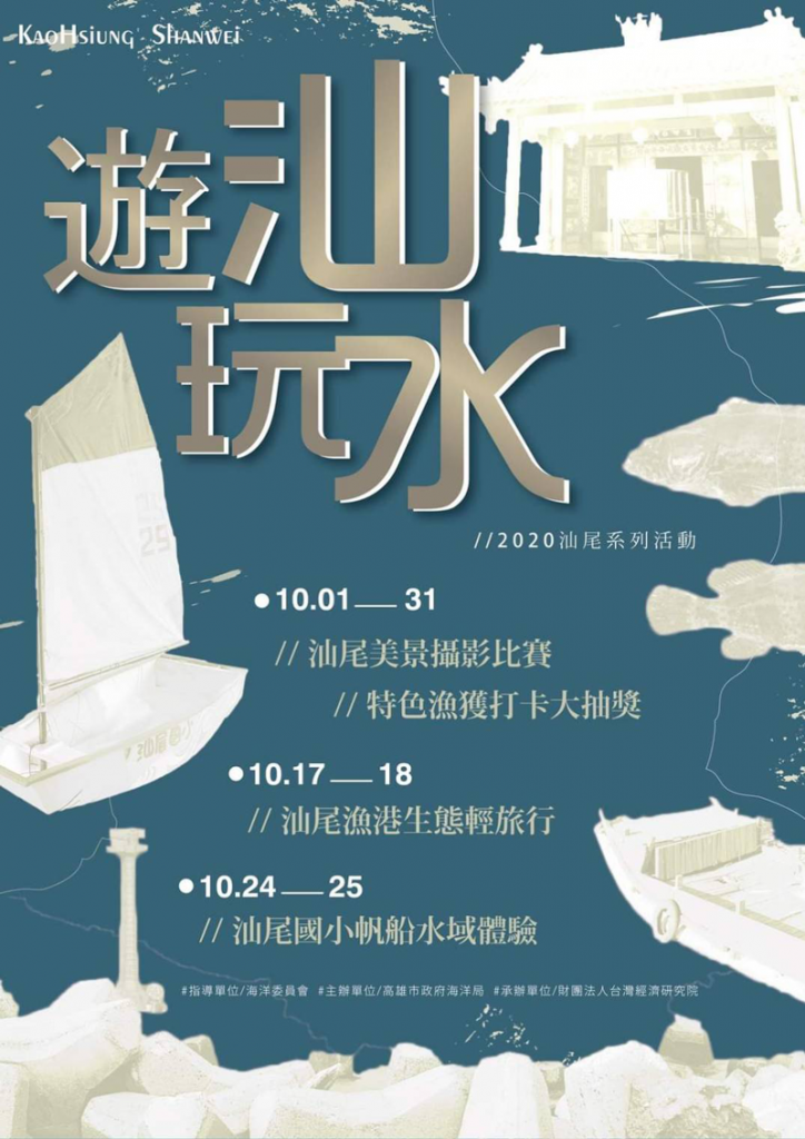 高市海洋局「遊汕玩水」系列活動,10/1在林園區汕尾漁港舉行,邀請民眾遊汕玩水去,行程包含汕尾漁港輕旅行與汕尾國小帆船水域體驗活動,其中重頭戲是打卡抽獎以及攝影比賽!參加比賽就有機會獲獎金2000元,打卡每週抽出兩名送特色漁獲獎品,快來參加一起尋找汕尾漁港打卡秘境!