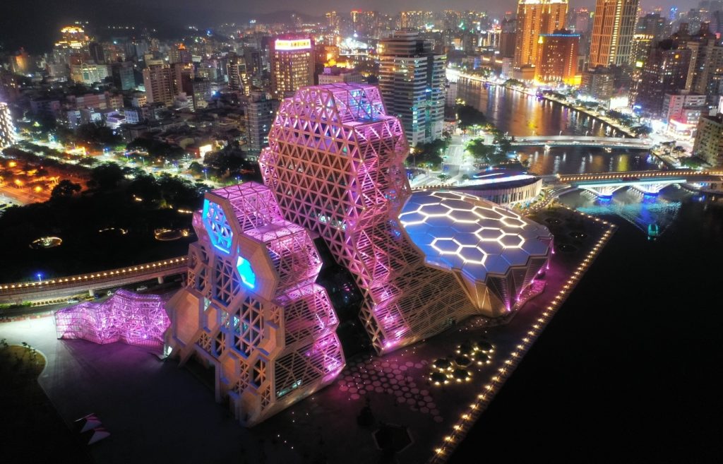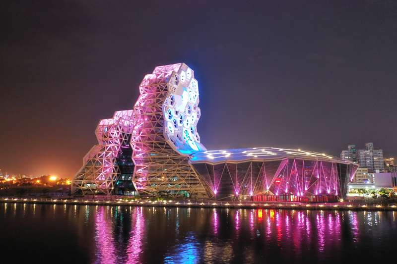 高雄最美地標之一「高雄流行音樂中心」綻放炫爛燈光,璀璨港都夜空,這座由⻄班牙建築團隊與台灣團隊共同打造的國際級音樂文化地標,日前進行夜間景觀照明測試,讓港都高雄爛浪指數飆升,繼高雄大港橋後,勢必成為另一個網美爭相造訪的熱門打卡新地標!