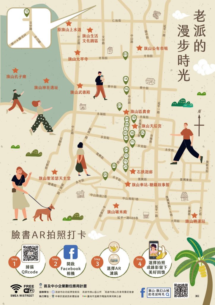 旗山形象商圈促進會理事長吳月鳳說,數位時代浪潮來襲,山城AI智慧商圈行銷計畫,已輔導超過200間店家成功轉型,更大力協助申請中小企處數位寬頻應用街區計畫,幫助店家學習如何運用自媒體行銷,包含舉辦行動支付、手機攝影及社群經營等課程,輔導商家學習行銷技巧,吸引更多旅人親自走訪旗山踩點介紹店家及旅遊路線,帶動人潮、提升買氣。