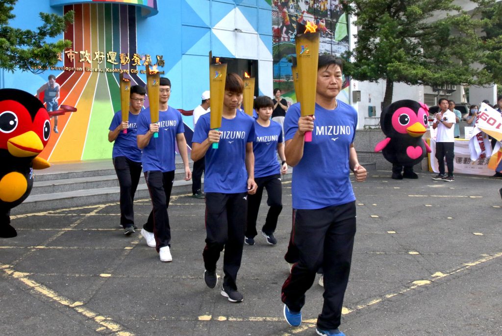 聖火隊由在107年全民運奪下4金7銀7銅佳績的水上救生及蹼泳擔任, 7位代表今年也是奪牌熱門,透過交接儀式,凝聚高市代表隊士氣,爭取亮麗成績,同時也宣傳109年全民運動會即將熱鬧舉辦,完成聖火交接儀式後,下一站將前進屏東縣。