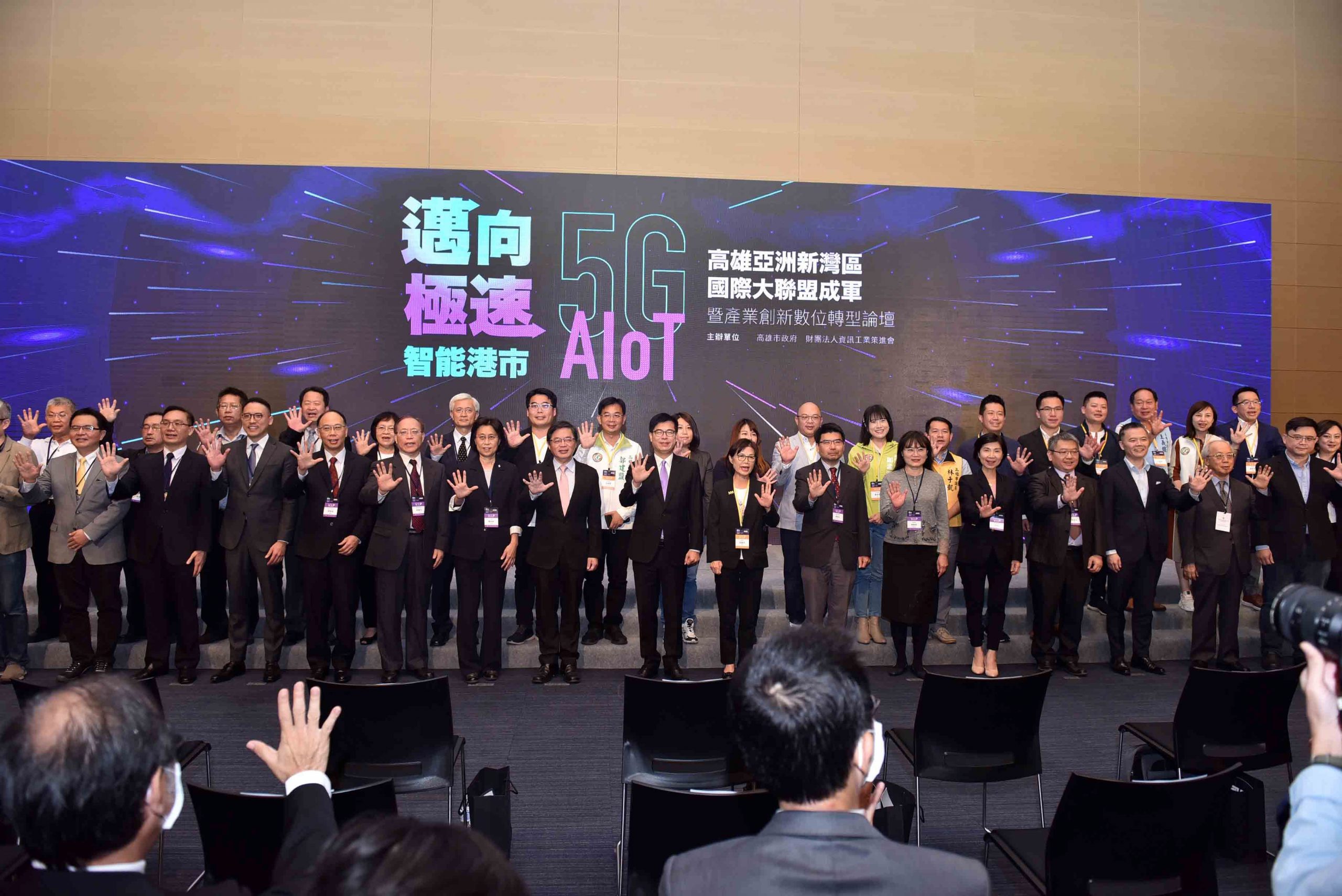 台灣微軟、台灣思科、亞馬遜旗下雲端服務商AWS等國際大廠,與中華、遠傳等國內電信業者,共同在亞洲新灣區打造全台最完整的5G AIoT驗證與示範場域,由陳其邁市長、高雄巿議會議長曾麗燕、各業者代表共同出席成軍儀式。