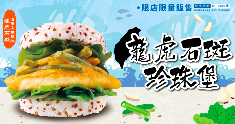 龍膽石斑珍珠堡限定販售!高雄5寶之一的「龍膽石斑」化身成為以香Q米飯製成的濃濃和風味米堡,自今年(109)12/16起在全台百家摩斯漢堡限店限量,期間限定開賣!高雄共8間門市可以搶鮮品嚐!
