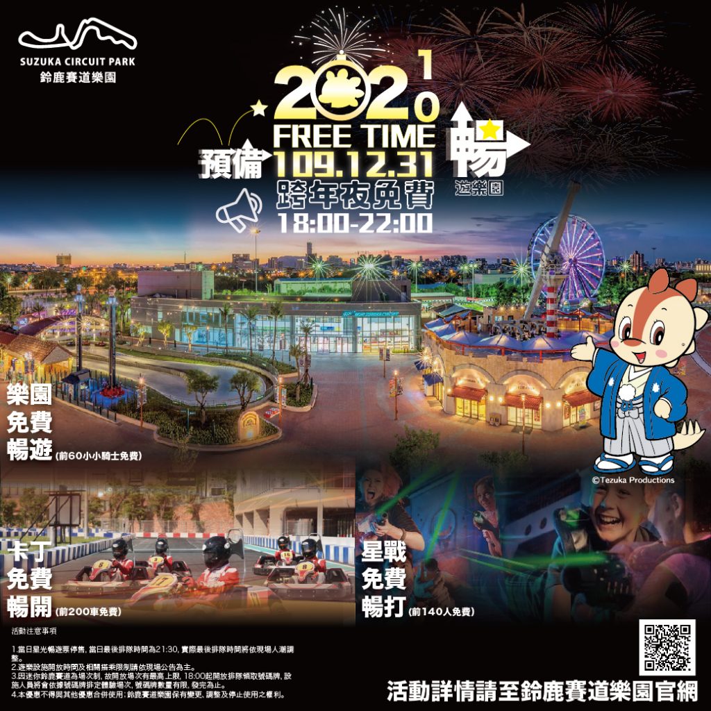 鈴鹿賽道免費暢玩活動詳細內容可上鈴鹿賽道樂園官網或臉書搜尋鈴鹿賽道樂園Suzuka Circuit Park,大魯閣「跨年慶」的詳細活動內容可至大魯閣草衙道官網或臉書搜尋草衙道Taroko Park Kaohsiung查詢。