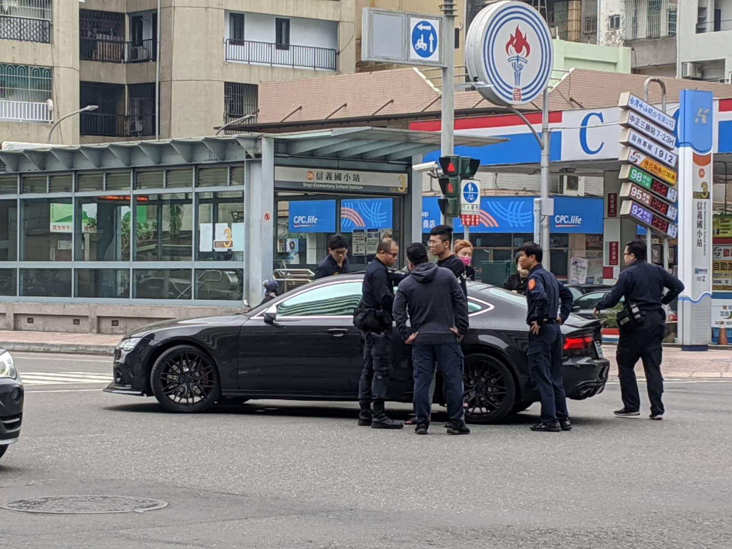 下車!下車!12/21下午2點多,高雄巿中正三路、錦田路口,1輛黑色的汽車停在路口,不知發生什麼事,赫然看見警察拔槍對峙,伴隨陣陣細雨,現場氣氛緊張,前方更有交通事故,難道黑車出了什麼問題?光天化日之下,讓警察在車流不斷的中正路拔槍喝阻!但人民保母不是塑膠的,雖然僵持一段時間,眼見不斷有前來支援的警力,車內男女挺不住壓力,最後黯然下車,只能乖乖就範。