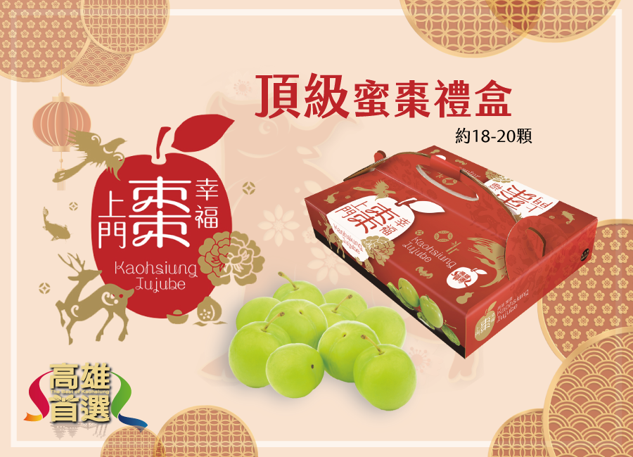 高雄是全台蜜棗最大產區,品質頂級更被譽為「台灣青蘋果」,高市農業局為讓民眾吃到極高品質的高雄首選蜜棗,集結轄內農會一同推出「幸福棗上門禮盒」,不用高雄產地跑透透就能在家選購優質蜜棗, 5台斤裝共分兩款禮盒,頂級每盒950元、特級750元。