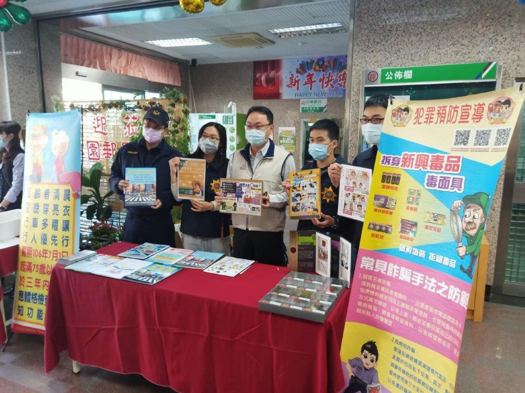 林園警分局由偵查隊及交通組在現場透過大型看板與宣導單等大型輔具進行法治觀念宣導,偵查隊長吳國雄更親自帶隊,針對新興毒品、詐騙等議題分享如何識讀、拒毒以及常見詐騙手法有哪些?而交通組則是針對酒後不駕車、高齡者用路安全叮嚀及機車安全駕駛要訣,針對各種不同用路族群,強化交通安全概念建立。