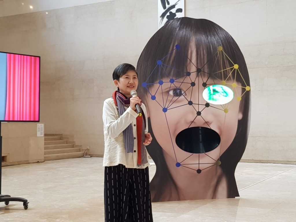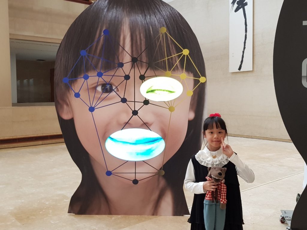 高美館館長李玉玲開心表示,在去(109)年修館期間,高美館仍透過各種線上特展讓藝術點綴生活,甚至讓展覽更加豐富精彩,最終也催生出這個獨特的、前所未有的特別企劃,以湯尼的臉部辨識呈現全新作品,在台灣獨家徵臉計畫超過50個6至10歲兒童報名者中,由奧斯勒選出來自台南的徐筱樂同學作為「臉部辨識」系列創作的主軸,疊加演算法節點的幾何圖象中,結合所有參與徵臉企劃的孩童局部臉部特徵,以奇幻感十足的作品,帶大家探索科技與人類間的關係。
