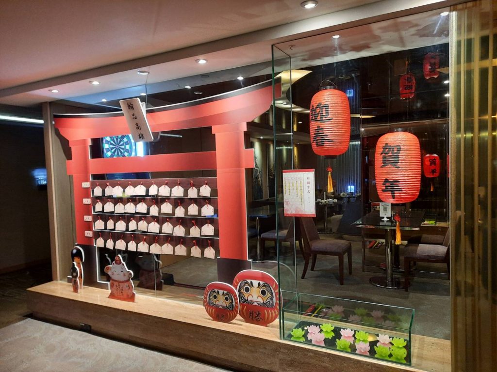 高雄翰品酒店把日本風情搬到飯店,精心打造三大拍攝日式風格主題區,包括1樓大門口外側的櫻花樹,1樓品日料餐廳入口處運用燈籠、櫻花樹幹、暖簾等日式元素妝點門面,東洋味十足,在7樓貴賓廳還有日本神社鳥居新春開運祈福區,民眾可索取祈福卡寫下新年願望,為新的一年討喜氣。