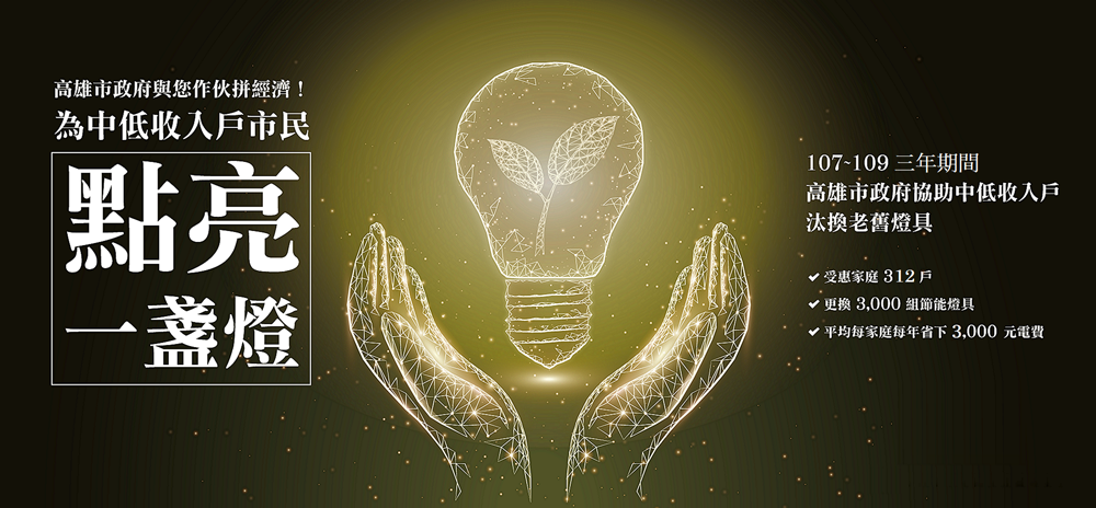高市經發局自107年到109年配合中央「縣市共推住商節電計畫」,不只輔助住商業者汰換老舊耗能電器,也聯手社會局、里長協助中低收入戶免費更換節能燈具,3年協助312戶汰換近3000組燈具、省下超過100萬電費,為他們點亮一盞燈,也讓他們的生活環境更安全明亮。
