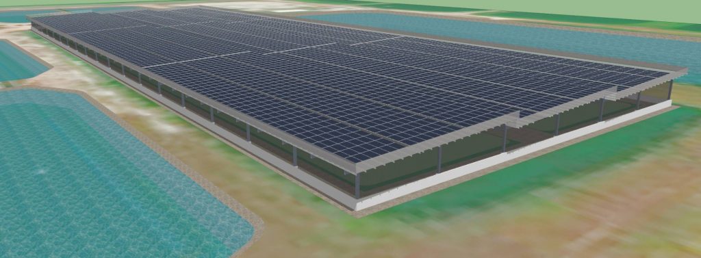 今(110)年2月高市漁電共生專案辦公室成立後不到一個月就傳出捷報,首件已獲核准的屋頂型漁電共生申請案落腳永安區,申請面積達3萬8千平方公尺,預計今(110)年8月完成,預計可發電約5,800KW。