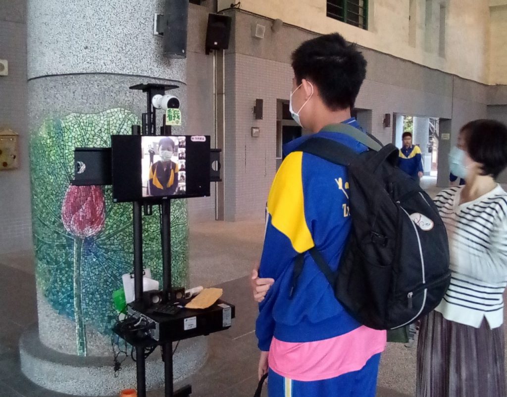 左營國中在開學前幾天除了進行全校噴藥大掃除外,針對校內學習場域也盡可能做到滴水不漏,開學當天學校架起紅外線感應儀偵測進校師生體溫,同時個班也備妥了各項防疫物資,如手套、肥皂、消毒水等,每班更配有一隻額溫槍讓師生都能隨時掌握體溫,確保安全無虞。