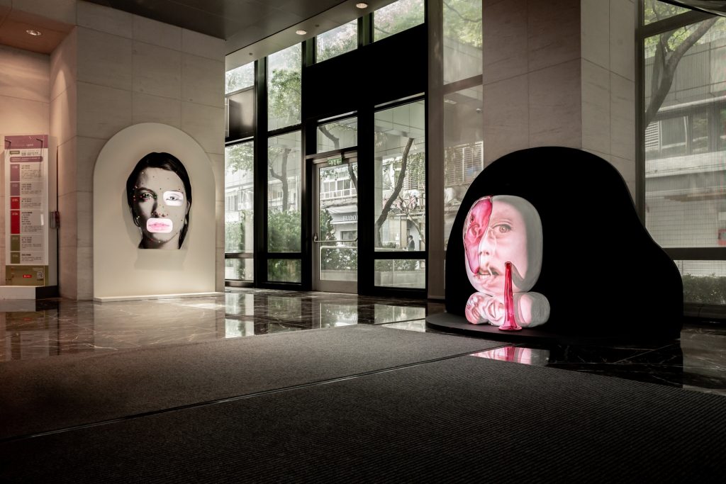 湯尼.奧斯勒以獨特且創新的錄像雕塑,將影像自二維空間中解放,《湯尼.奧斯勒:水的記憶》延續關注臉部辨識、演算法與人工智慧對身份、人的存在狀態與社會文化影響等議題,結合了玻璃、水和電腦運算的多媒體影像雕塑裝置,如同具有生命彼此對話交談的魔幻奇石,同時台新總部大樓外也特別打造了以奧斯勒的經典作品作為靈感的大型窗貼佈置,透過明亮有趣的設計,呈現奧斯勒作品與仁愛圓環鄰里、市民朋友之間的幽默對視。