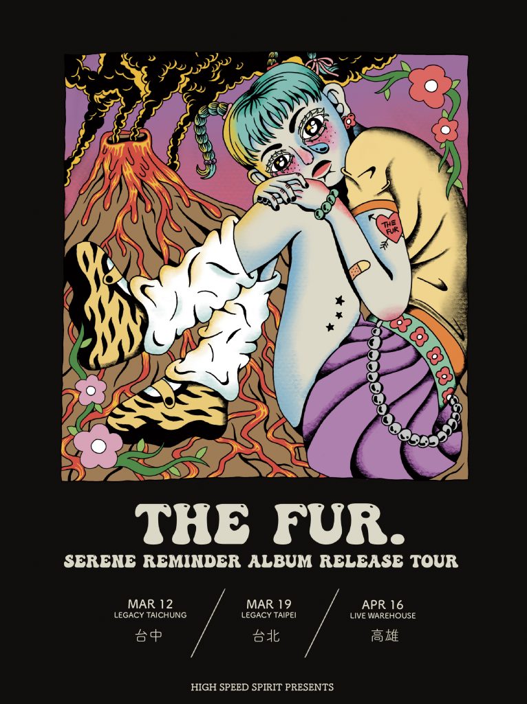4月率先登場的The Fur.是台灣樂壇少數以全英文創作的樂團,全創作專輯《Serene Reminder》沉靜的提醒巡迴演唱會,要用蓬鬆可愛的溫暖力量療育歌迷!
