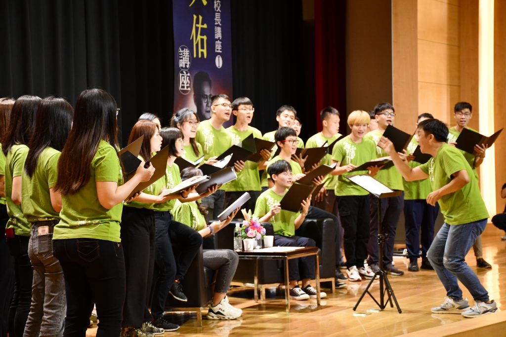 鐘育志表示,音樂也具有療癒人心的功能,羅大佑的創作,如同一把鋒利的手術刀,演藝生命的真誠與情感,與此同時,長期關心原鄉的高醫校友醫師陳俊志帶領聲樂團,演出合唱版的「童年」向音樂教父羅大佑致意,令人心醉的歌聲,也讓羅大佑聽得入神大讚聲樂社演出的版本非常棒!