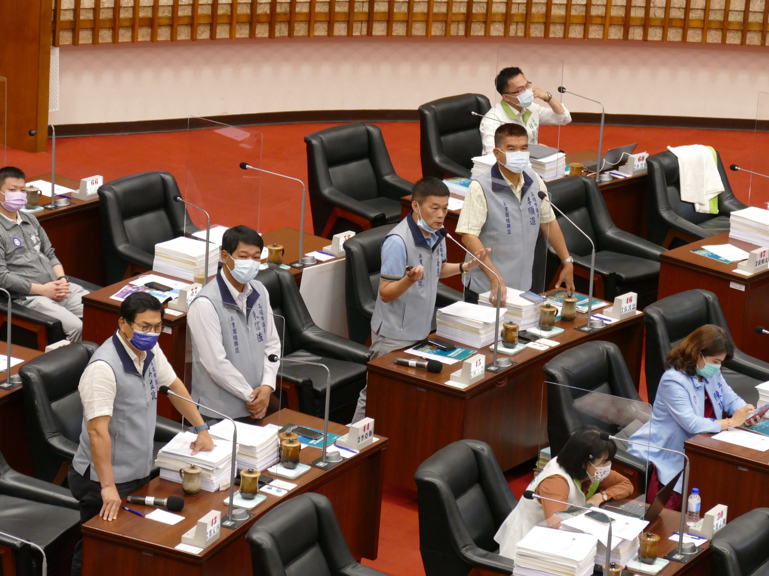 「兩年停四部,高雄會進步」國民黨團聯合質詢鎖定空汙議題,要求市府2年內將興達電廠4座燃煤機組除役,維護市民呼吸權。總召童燕珍表示,空汙嚴重影響市民健康,高雄嬰兒猝死率居全國之冠,市府應加強空汙防制;陳若翠為市民爭取呼吸權,要求陳其邁硬起來;興達電廠為全國最老舊的燃煤電廠,陳美雅主張興達電廠立即除役;高雄今年第1季PM2.5平均值35.1,居六都第一,黃紹庭呼籲陳市府「2年停4部」,將興達電廠4座燃煤機組除役。