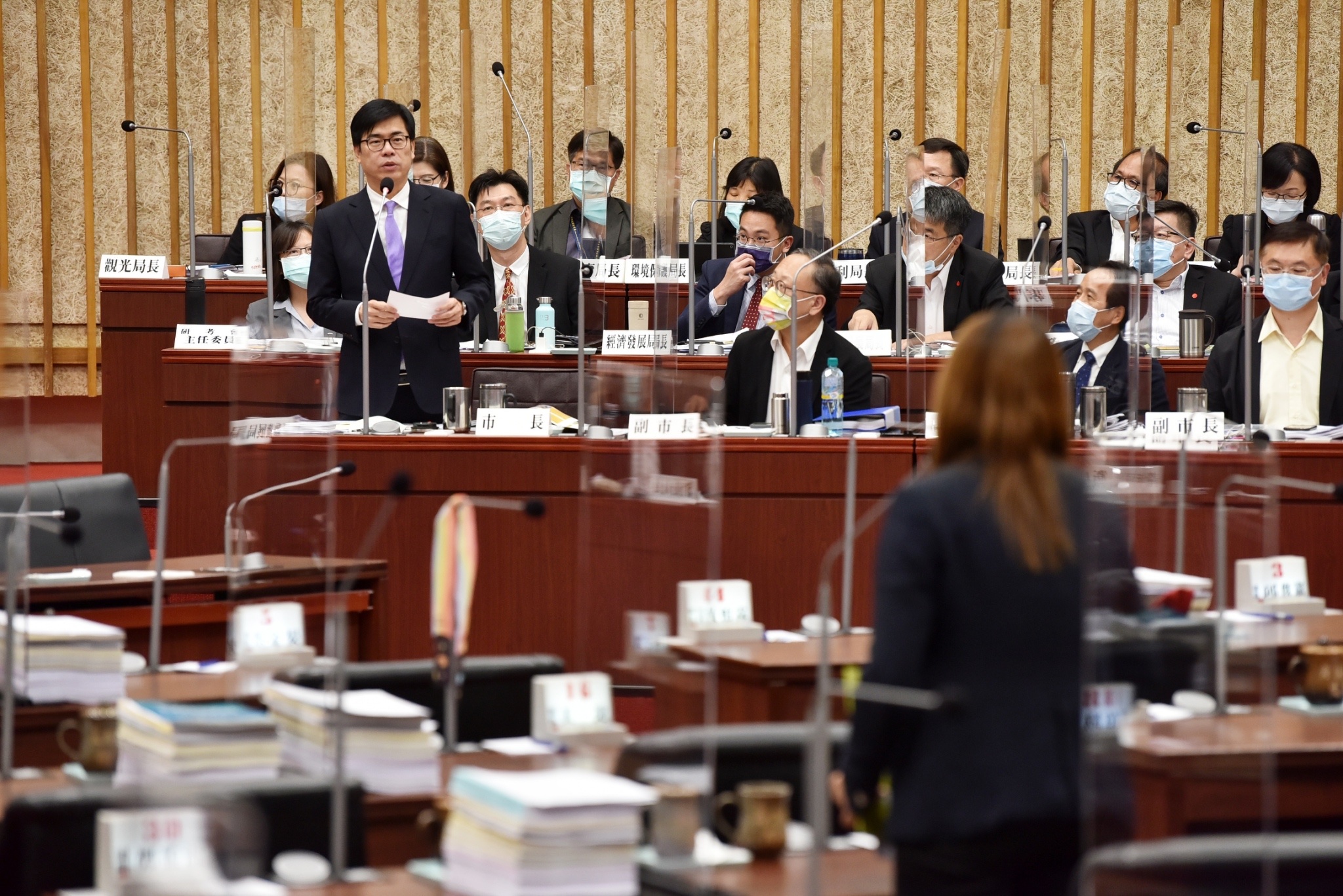 「陳市長和市府團隊辛苦了」,民進黨團總召鄭光峰說,民進黨團將強力監督市府,共創更好明天;針對治安議題,黃文益強調數據會說話,今年1至3月治安發生案件比去年減少、破獲率則提升,顯示市府團隊的努力;陳市長強調,減少槍擊案件及槍枝溯源非常重要,希望議會不分政黨共同打擊犯罪。