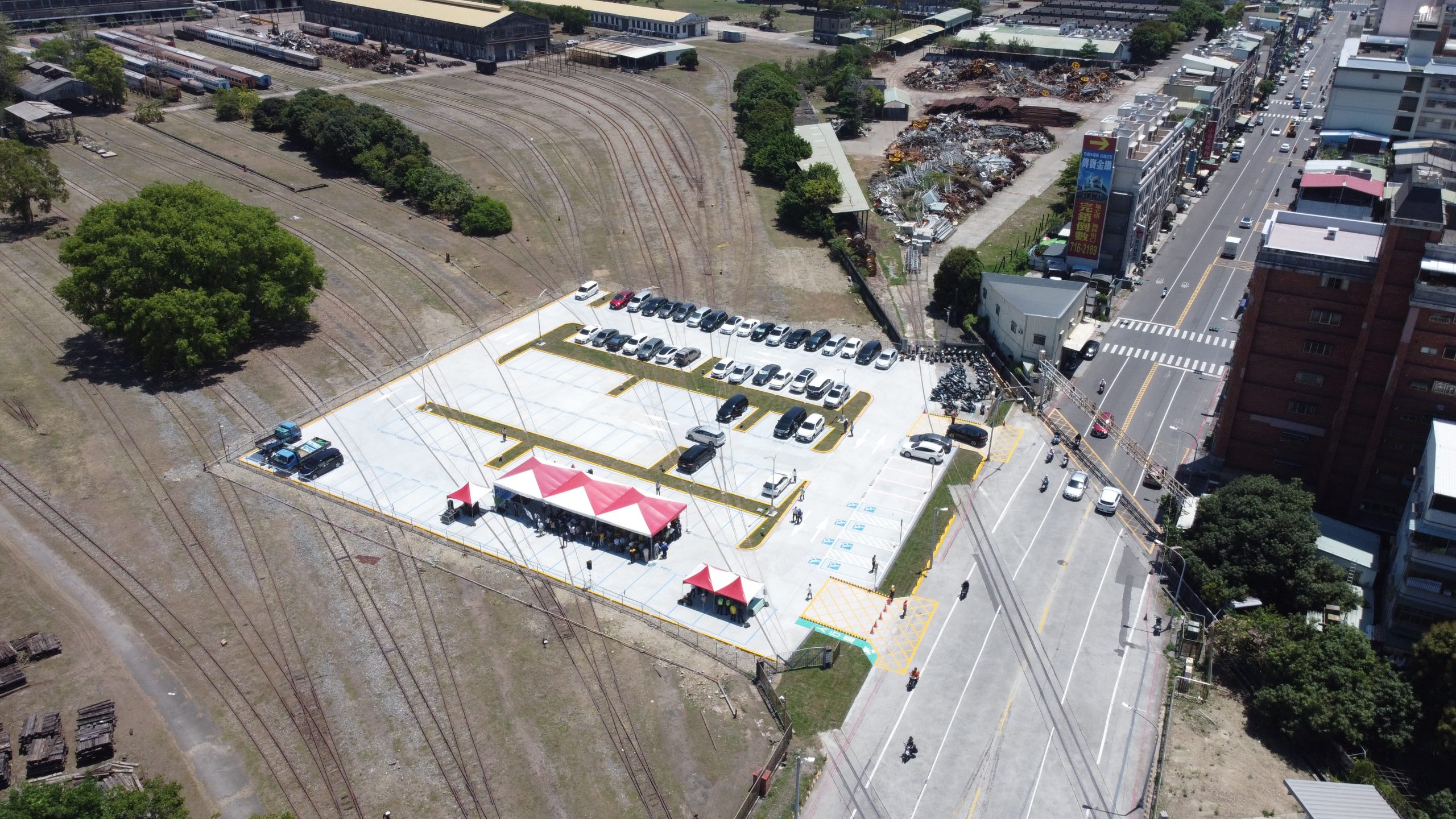 高雄市二聖公有停車場今(5)日完工啟用,停車場鄰近二聖路輕軌C36車站,共可容納120輛小型車停放,紓解停車需求帶動當地公共運輸發展,這座停車場原來是台鐵機廠用地,在保留既有鐵道紋理與轉轍器下,成為一座具有鐵道意象特色的停車場。