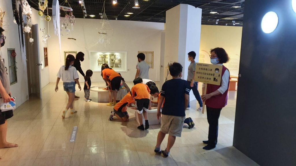 另外,高美館指出,民眾洽公或參觀時採實名登記,入館需全程配戴口罩、量測體溫(不得超過37度C以上)與酒精消毒,並保持社交距離,館內全面禁止飲食。高美館也在入館門口公告防疫資訊,並製作手拿牌由館員與志工手持公告隨時提醒民眾,如有小團體參觀,將採分流分區,團進團出方式進行。