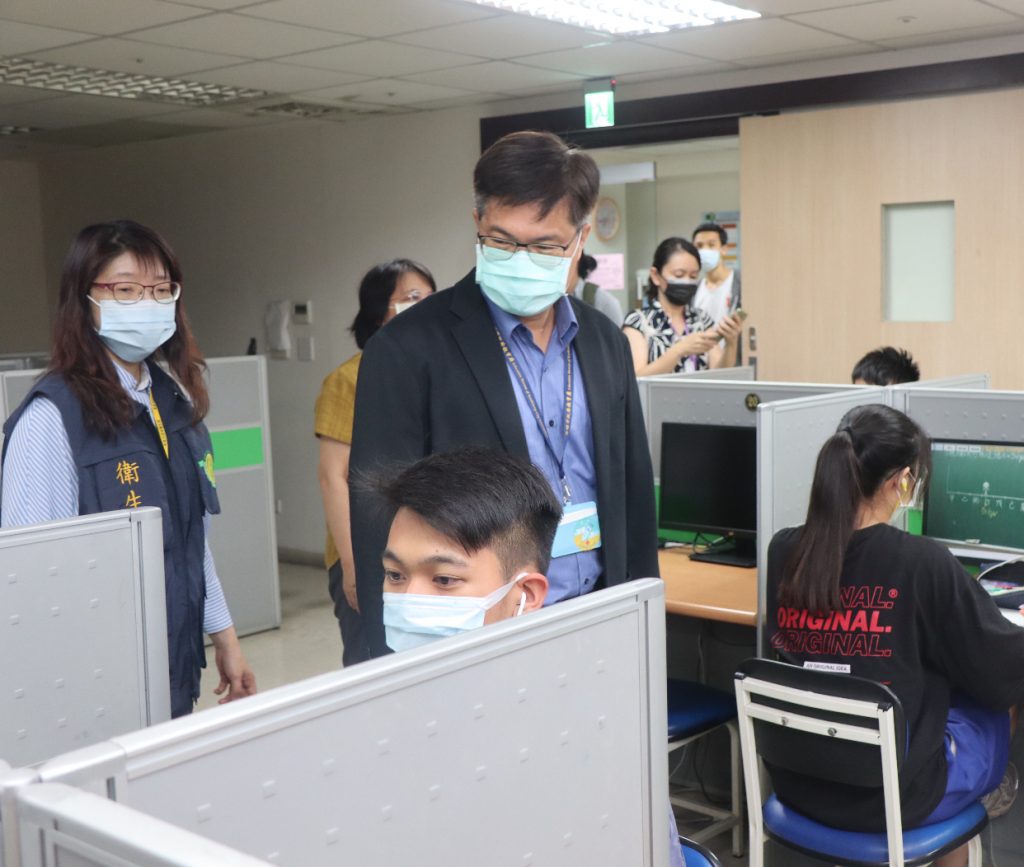 新冠疫情持續變化,全台疫情警戒升高到第二級,高市教育局長謝文斌今(14)日晚間與衛生局簡任技正張秋文走訪三民區一大型補習班關心防疫作為,確保補習班同步貫徹防疫工作,以高標準防疫措施,共同守護學習環境的安全。