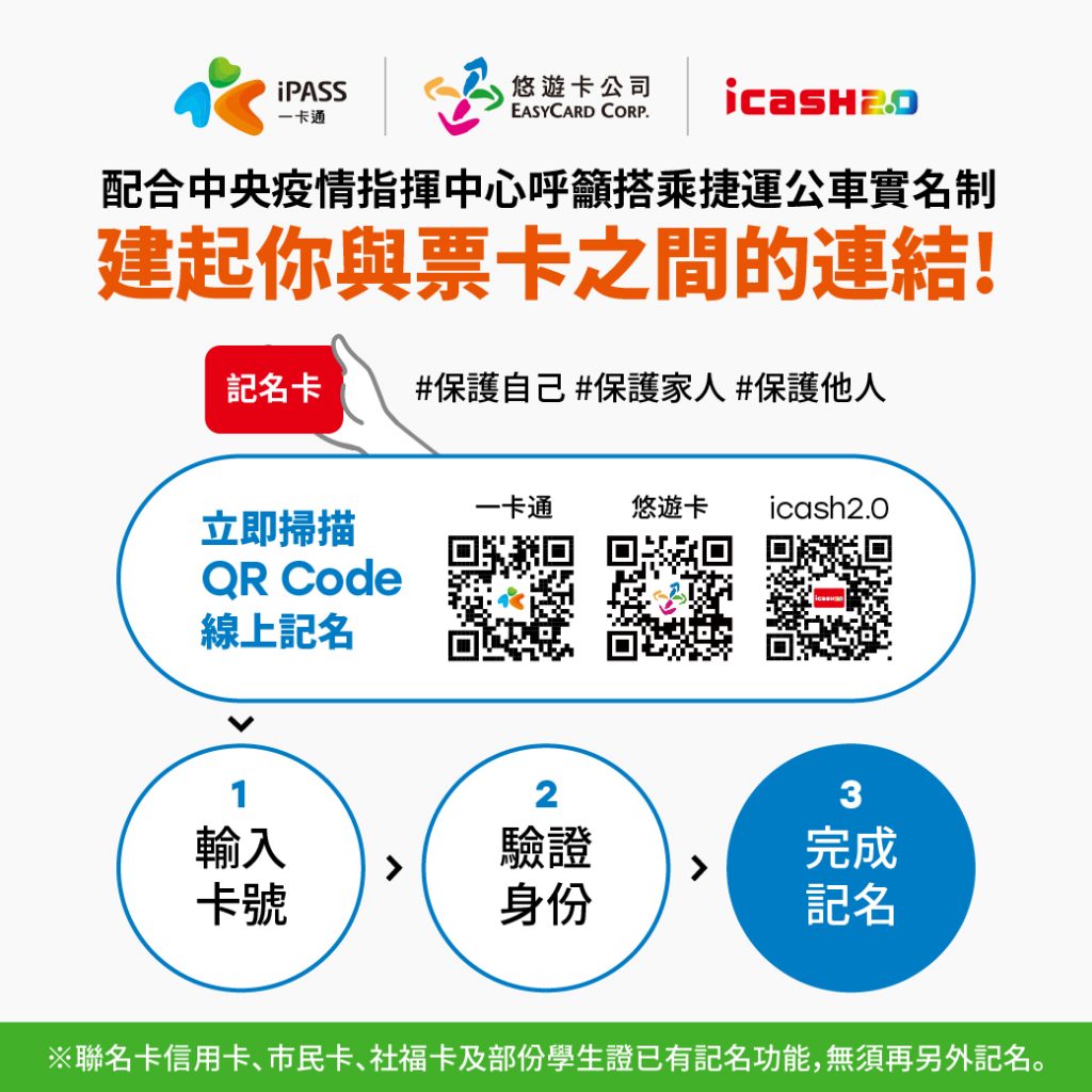 電子票證的記名相當簡單,只要在記名網頁上輸入外觀卡號及填寫個人資料,即可完成記名,也完全免費。此外,提醒上半族群搭乘大眾運輸不僅要全程配戴口罩,車廂內、候車區也都禁止飲食,即使在戶外最好也是戴緊口罩,將自身防疫措施做好,共同幫助台灣盡快走出緊張的疫情。