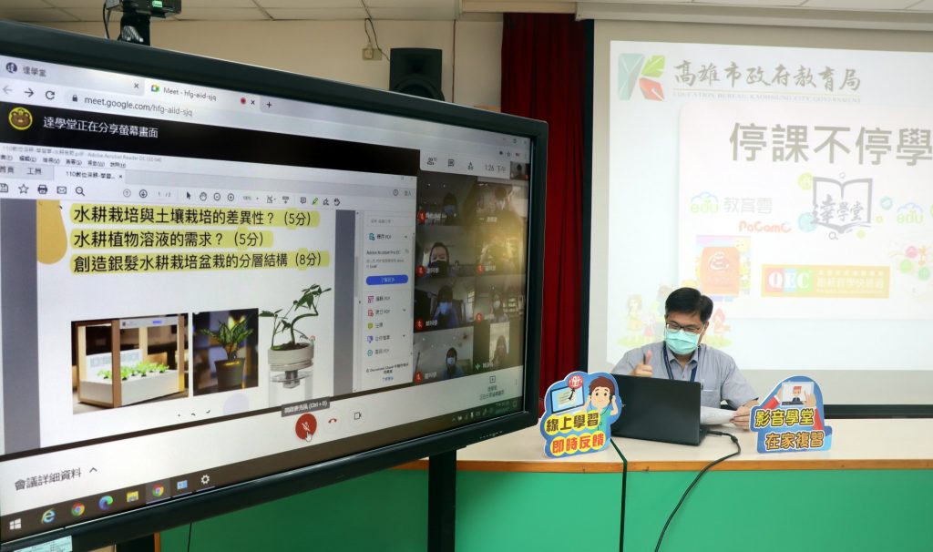 隨著疫情持續升溫,高雄市宣布高中以下學生可請防疫假在家學習,而家長擔心課程進度怎麼辦?高市教育局線上學習超前部署,教育局長謝文斌今(17)日以「達學堂」遠距教學平台與大同國小進行遠距視訊,體驗線上教學兼具防疫且不受空間限制的方便。達學堂現有超過2350部影片,題庫高達1500題且持續增加中。