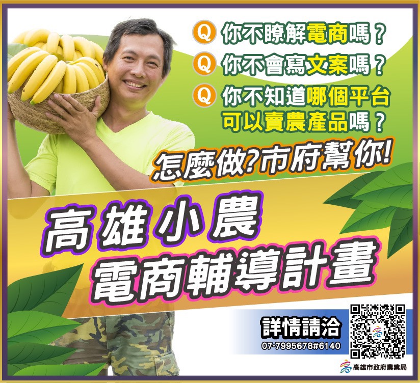 農業局指出,若有上架電商需求的小農,可立即上高雄市政府農業局官方網站,搜尋最新消息「高雄小農電商線上媒合」中點選網址填寫資料,或電洽高雄市政府農業局07-7995678#6140由專人協助。