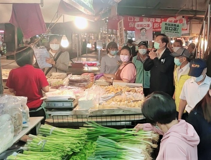 全台疫情緊張,全民不僅減少外出,紛紛自購食材烹煮減少外食,今(21)日高雄市三位副市長史哲、林欽榮、羅達生分別赴6處市場稽查防疫。除要求單位嚴加戒備、加強公廁定時清消並避免群聚,同時落實簡訊實聯制QR Code等防疫措施,經發局稽查28處市場、夜市,開出9張舉發單,全市攤商與民眾未戴口罩。