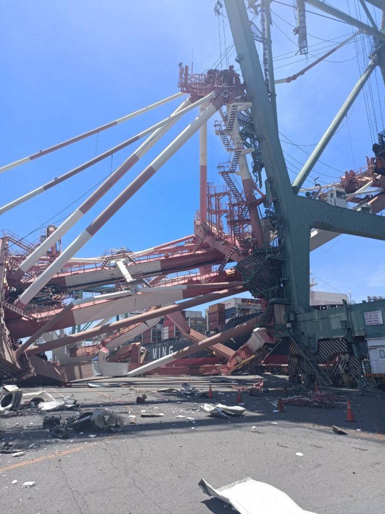 高雄港70碼頭今(3)日上午11:21發生OOCL( 東方海外公司)貨櫃輪Durban撞毀鴻明公司停在70號碼頭的船舶與橋式起重機的意外事件,造成橋式起重機倒塌及1名工人受傷送醫,已救出送往醫院;另GC6橋式起重機上保養維護人員2人受困,目前也已救出無受傷,遭撞倒塌與嚴重損毀的2座橋式起重機造價約6億元,詳細損失金額需再調查。