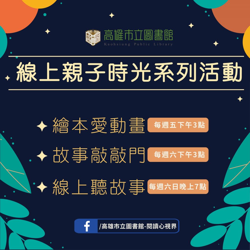 親子共讀館藏豐富的高市圖,防疫期間也持續提供親子線上資源,企劃「線上親子時光系列活動」,6月起每週五、六以及每週六、日推出檔檔精彩、適合親子共度的線上聽故事時光,關心停課期間孩子用眼過度,高市圖「線上聽故事」上架可以聆聽的故事資源,讓大人小孩都能用「聽」的方式去感受故事魅力。更多服務資訊及電子書資源,請上高市圖官網查詢 (https://www.ksml.edu.tw/ )。