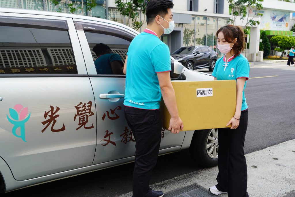 光覺表示11日已將第一批防疫醫療物資送往高雄加工出口口區,6/18還有第二批預計送往小港醫院,因為現在醫療資源大缺貨,只能分批出貨,目前還籌劃去巨蛋大型注射站運送物資。