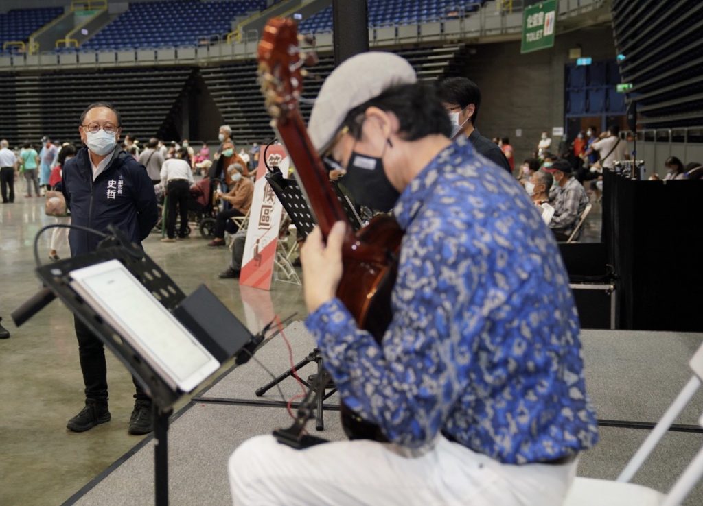 高雄市首波87歲以上長者接種新冠疫苗今(15)日開打,而在高雄巨蛋疫苗接種站現場傳來陣陣樂音,原來是藝文界為紓緩防疫工作的高壓嚴肅氛圍,將表演場景換到接種站,高雄市交響樂團與民間藝文團體合作,透過撫慰人心的樂曲轉化成勇氣、愛與希望,為現場醫護與接種疫苗的長輩暖心演奏,盼藉由藝術的力量,緩和防疫以來的焦慮與負面情緒。