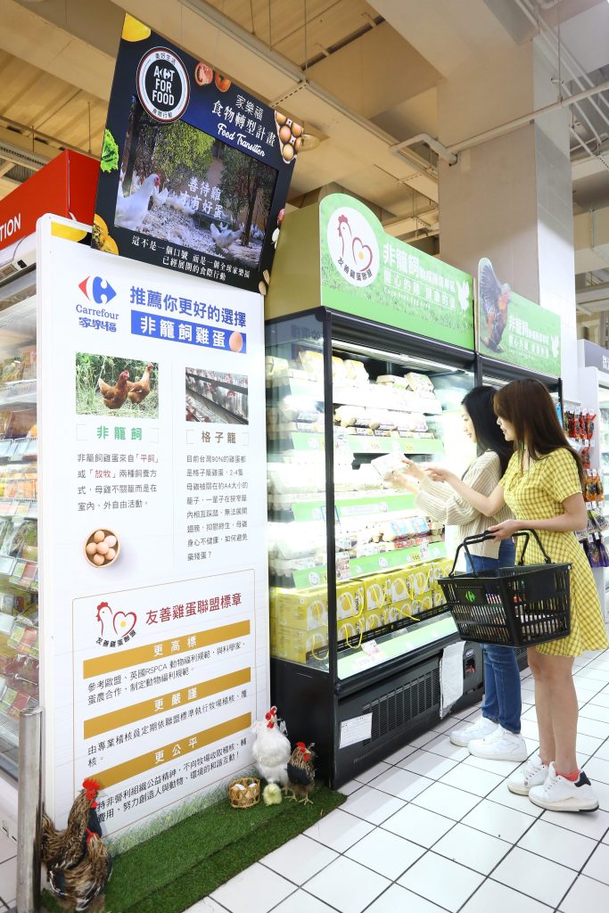 家樂福企業社會責任暨溝通總監蘇小真表示,疫情讓台灣消費者對於永續、動物福利及消費責任等概念更加重視,賣場裡最常缺貨的雞蛋品項就是非籠飼雞蛋,全台超過200間家樂福門市都設有非籠飼雞蛋專區。家樂福自107年推動食物轉型,是亞洲首家重視動物福利及公告非籠飼雞蛋承諾的大型通路,不僅創先成立專區打開市場,更加積極推動稽核標章,是擁有最多非籠飼蛋品項及力挺友善雞蛋聯盟直營品牌的通路。