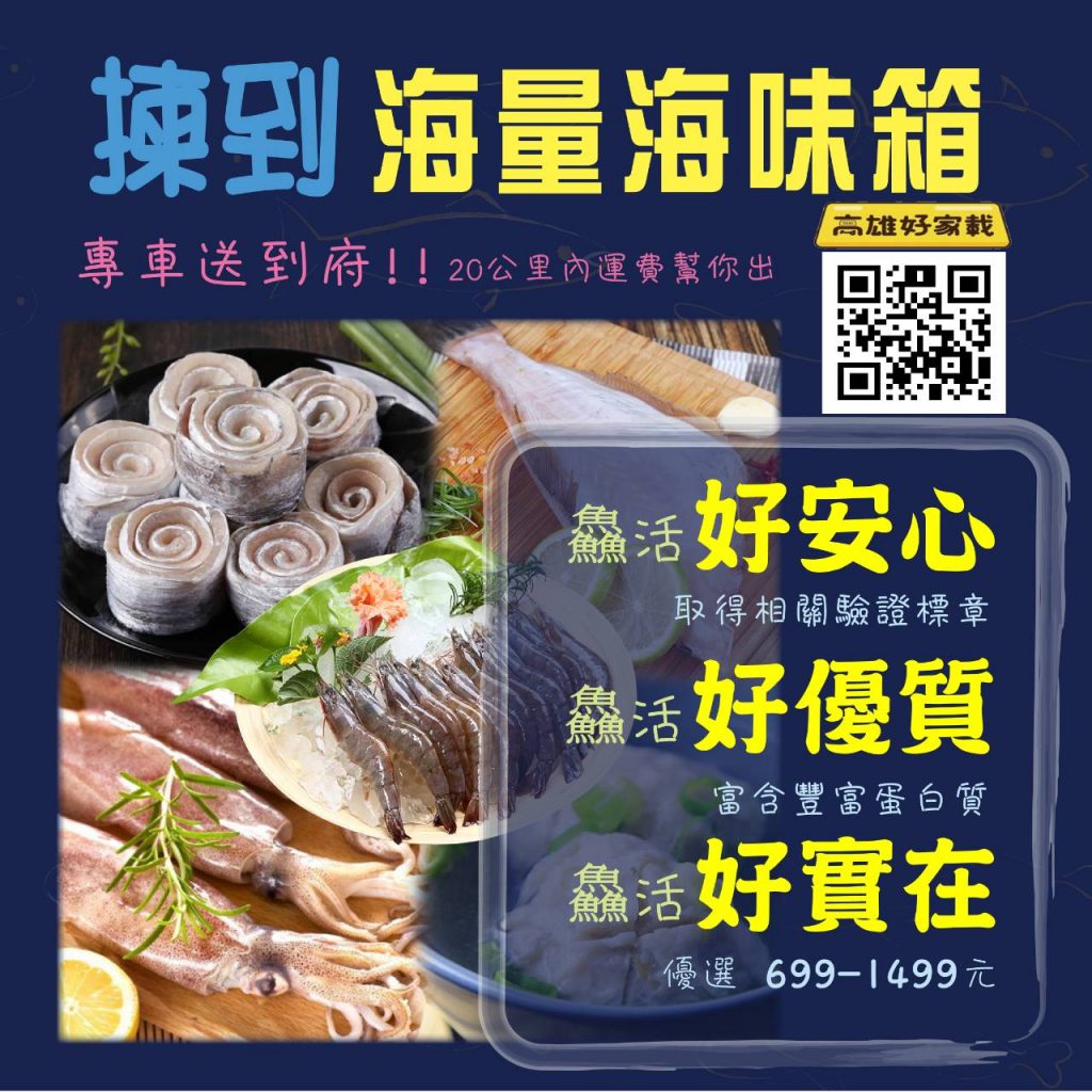 搶不到高雄好家載超夯的「揀好蔬果箱」?沒關係,現在又有新選擇!高雄在地10家水產業者推出699元起高營養、低熱量的優質蛋白質「揀到海量海味箱」來囉。同樣可以透過高雄好家載平台訂購,每週二、四、五下午2點到6點新鮮配送,宅在家就能吃遍新鮮海味!