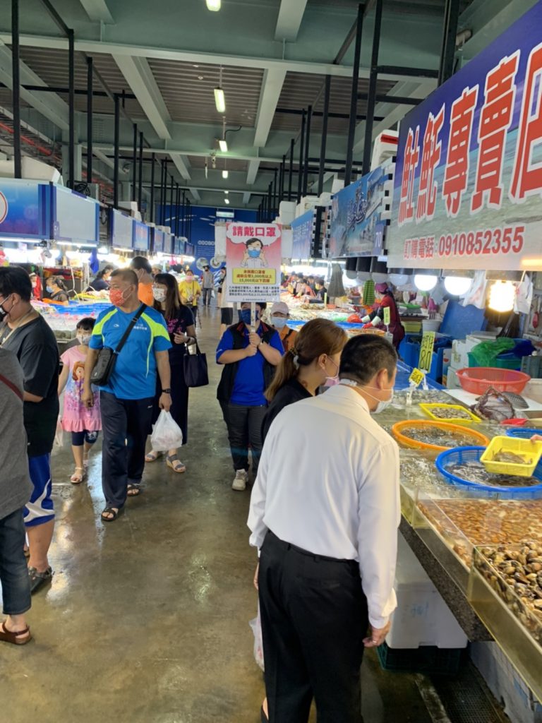 高市海洋局長張漢雄指出,現階段疫情雖稍有紓緩,但海洋局仍要求各區漁會所轄魚市場持續作好宣導防疫措施,並不定期前往稽核並宣導防疫措施,經發現未戴口罩或群聚現象,將舉發送交衛生局裁罰。張漢雄再次呼籲民眾採購水產品可一次購足,減少外出機會,共同為防疫努力。