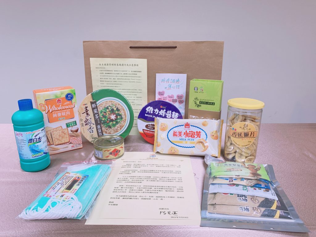 關懷感謝包當中,除了有額溫卡、口罩、漂白水等防疫小物,方便民眾後續進行自主健康管理,另外還有高雄特色農漁產品與零食。高市行政暨國際處處長項賓和表示,這批關懷感謝包全數由市府同仁親手分裝發送,後續市府也會將先前的防疫關懷包升級,讓所有配合防疫進行居家檢疫或隔離的市民,都能感受到市府團隊的關心與感謝之意。