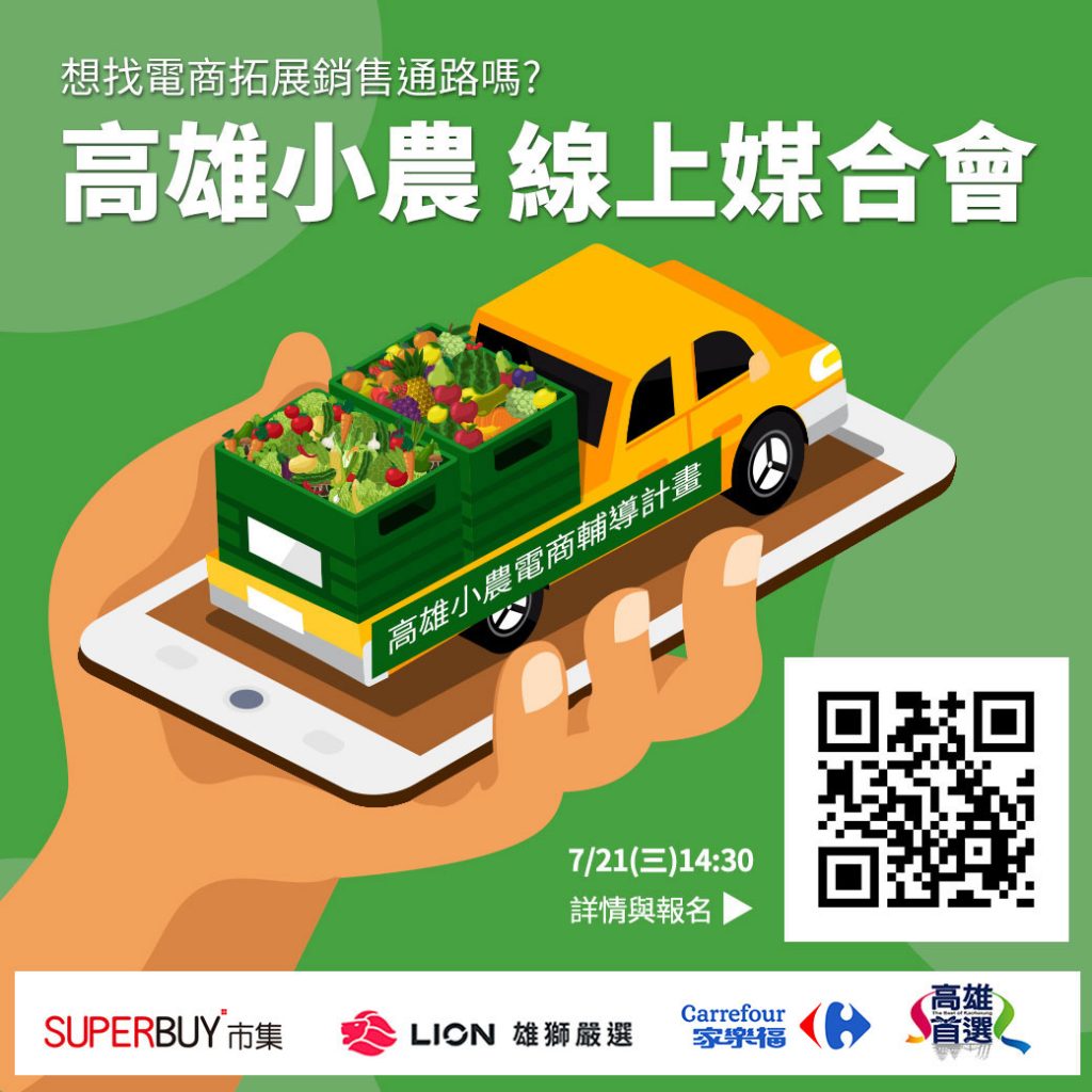 高市農業局長張清榮表示,近兩年受新冠疫情影響,越來越多消費者透過網路下單購買農特產品,連農產品銷售也逐漸走向新型態通路,因此跨局處與青年局合作,利用「高雄市青年創業發展基金」,推動小農電商輔導計畫,協助小農們拓展新通路。7/21下午14:30將有一場在線上媒合會,歡迎有興趣的農民參與,預計有superbuy市集、雄獅嚴選、家樂福線上購物及高雄首選電商平台參與,歡迎有興趣的農民朋友們一起報名參加,共創網路商機。