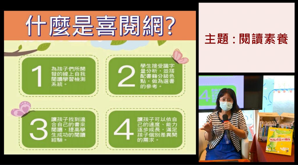 今年「喜閱網夏日親子閱讀趣」線上研習活動課程規劃「閱讀素養」、「閱讀習慣」及「閱讀思考」3個主題,分享如何透過閱讀豐富孩子的生命,讓孩子樂於與書為友,此外,孩子在閱讀後可以也可上「喜閱網」網站進行闖關測驗(http://ireading.kh.edu.tw/),自我檢核其閱讀理解成效,同時也能讓教師、家長了解孩子的閱讀能力,提供最適切的教導。