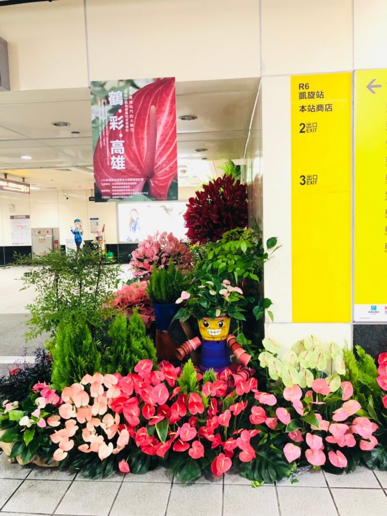 高市農業局為推廣在地花材,振興花卉產業並促進國內花卉市場消費,推動「高雄市促進花卉消費措施計畫」,本週起陸續在高雄捷運小港站、鹽埕站、凱旋站、三多商圈站、草衙站、文化中心站、美麗島站、中央公園站(收費區)、高雄車站等交通節點展出,每場次展期10天,歡迎搭乘捷運民眾拍照打卡,「疫」起點亮生活。