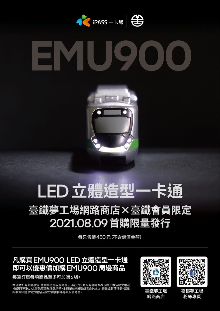 臺鐵日前亮相「EMU900型通勤電聯車」,亮眼車體被譽為「最美型區間車」,現在這輛絕美系電車將化身成為立體造型一卡通,臺鐵首次與一卡通公司合作,打造精緻的造型卡,嗶卡、付款儲值時車頭的LED燈也會同步亮起,超級吸睛、欠買,不過原定8/9獨賣的活動,因為系統設定錯誤,已延期到8/11獨家在臺鐵夢工場網路商店販售,首批限量900組,售價450元。