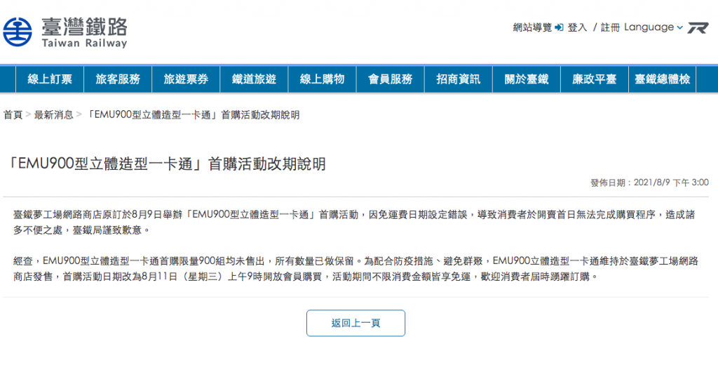 一卡通表示,每筆訂單限購2組,臺鐵還特別推出購卡加購EMU900指定周邊商品,可享最低74折起的優惠價及滿千免運活動,EMU900系列指定商品包含,造型毛巾、筆袋、領帶夾套組、隨身碟64G、口罩套、領帶、T恤、微型積木、背心、造型水、立體拼木。加購商品每筆訂單每項限加購6個且售完為止。
